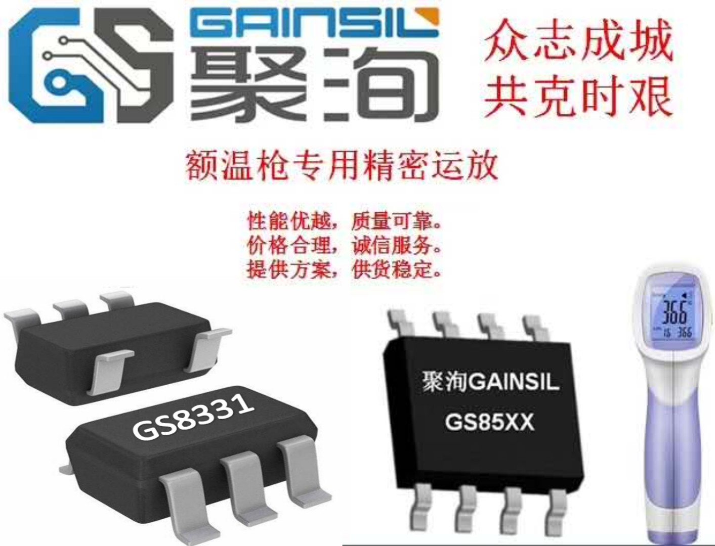 聚洵半導體科技(上海)有限公司(Gainsil Semiconductor Technology)于2016年成立于上海張江科學城,是一家全球化的芯片設計高科技企業,專注高性能、高品質模擬和混合信號產品的研發設計和銷售管理。公司目前擁有低噪聲運放、零漂移運放、高速運放、低電壓運放、納安級運放、比較器、模擬開關、電壓基準等產品線,產品廣泛應用于通訊網絡、消費電子、多媒體、工業控制、儀器儀表、液晶顯示、汽車電子、可穿戴設備、物聯網等眾多領域。